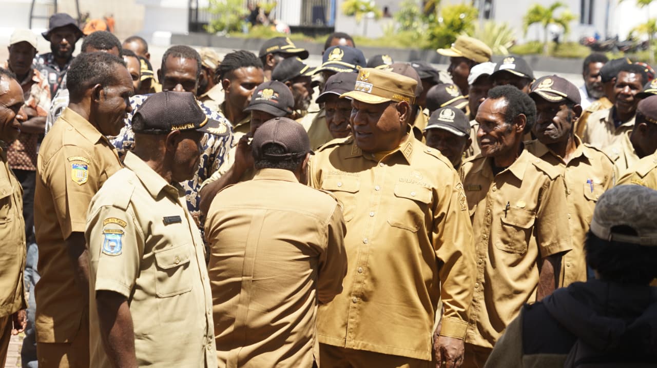 Bupati Atenius Murip juga menyampaikan bahwa momentum awal tahun dimanfaatkan untuk memberikan semangat baru kepada para aparatur kampung agar lebih aktif dan bertanggung jawab dalam menjalankan tugas sepanjang tahun 2026.